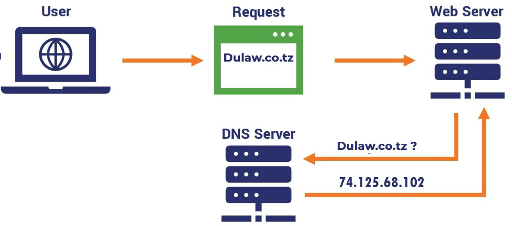 Vifaa vilivyopo kwenye mtandao, kama website, App nk hutumia anuani za mtandao (IP Address) kuwasiliana, sawasawa na hizi anuani za makazi na namba za nyumba zinazobandikwa hapa Tanzania kwa sasa. Mfano, kama unataka kuifungua website ya Duhosting unaweza pia kuipata kupitia http://198.207.55.196. Ngoja kidogo, je unaweza kuzikariri hizi namba? Hii n diyo sababu ikapelekea kugunduliwa kwa majina ya Webite ili kuwa mbadala wa IP. Mnamo mwaka 1984 wataalamu wa Chuo kikuu cha Wisconsin walitengeneza mfumo unaowezesha kuhusianisha majina ya website pamoja na anuani zao (IP Address) na kuweka taarifa hizi kwenye server waliyoipa jina la DNS Server. Server hii huhifadhi taarifa zote za domains na kuhakikisha DNS server zote za duniani zina taarifa ya upatikanaji wake. Hivyo wakati unafungua Website yoyote, mawasiliano hufanyika kati ya server iliyopo na DNS server kutoa taarifa. Kumbuka, kuna DNS server nyingi sana duniani na zote huwa na taaifa zinazofanana, hii hupelekea hata kama moja itakuwa haipatikaniki, basi haitofanya Website iwe haipatikani.